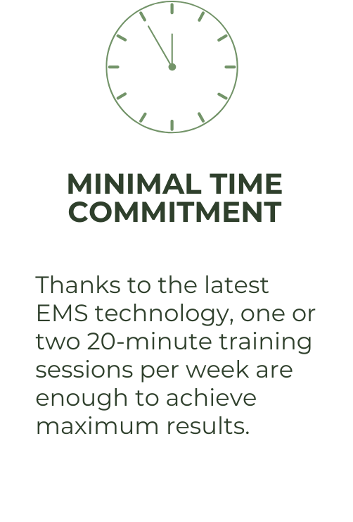 EMS training can achieve the same or better results in a shorter time compared to traditional workouts. A 20-minute EMS session can be equivalent to 120 minutes of conventional strength training.